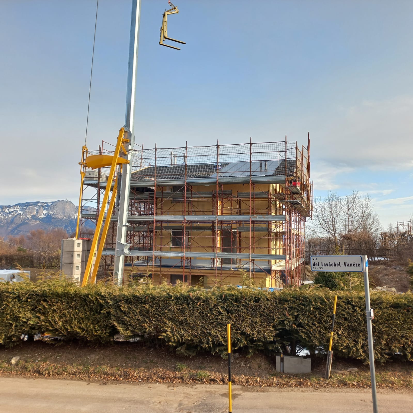 L'X-LAM (o CLT - Cross Laminated Timber) è un pannello in legno massiccio a strati incrociati. Ogni strato è composto da tavole di legno incollate tra loro, disposte in senso ortogonale rispetto allo strato precedente. Questa struttura incrociata dona al pannello una straordinaria stabilità dimensionale, resistenza meccanica e ottimo comportamento sismico.
